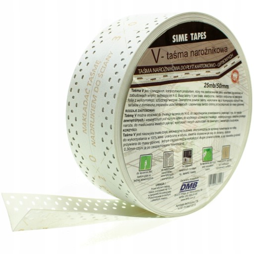 Bazą taśmy V jest biała, elastyczna, bardzo odporna na zginanie i pęknięcia folia z wytrzymałego tworzywa stanowiąca rdzeń nośny. Zewnętrzna powłoka taśmy, wykonana z kompozytu surowców bawełnianych z domieszką preparatów uszlachetniających zapewnia bardzo dobrą przyczepność do masy gipsowej.