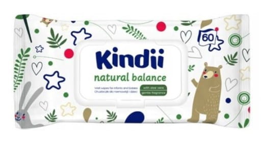 Kindii Natural Balance Chusteczki dla niemowląt i dzieci 60 sztuk