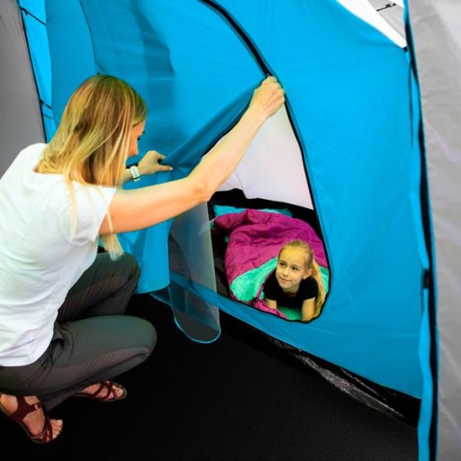 Dodatkowo namiot jest wyposażony w cztery wewnętrzne kieszenie, w których schowamy podręczne rzeczy oraz dwa uchwyty pod sufitem, dzięki którym możemy zawiesić lampkę.