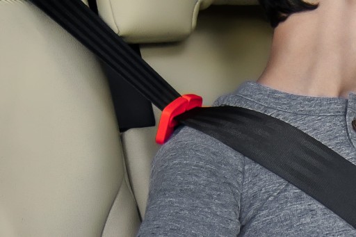 ✔️Dodatkowa czerwona klamra, służy prawidłowemu ułożeniu części ramiennej pasa samochodowego wzdłuż obojczyka dziecka