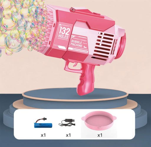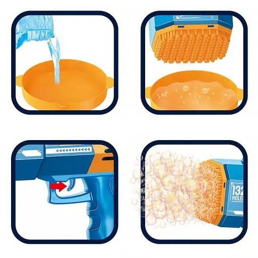 Nowoczesny automatyczny pistolet to zabawa przez długie godziny! Dziecko może strzelać dużą ilością kolorowych baniek, o różnych rozmiarach jednocześnie. To świetna okazja do rodzinnej zabawy w zbijanie baniek. Rozrywka idealna nie tylko dla najmłodszych ;)