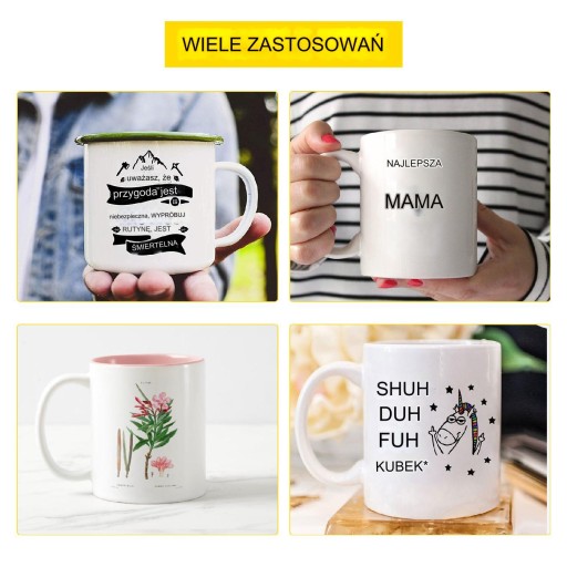 - Prasa termiczna do kubków oferuje pojemność 11 uncji / 20 uncji, umożliwiając transfer obrazów na różne rodzaje kubków i materiałów.