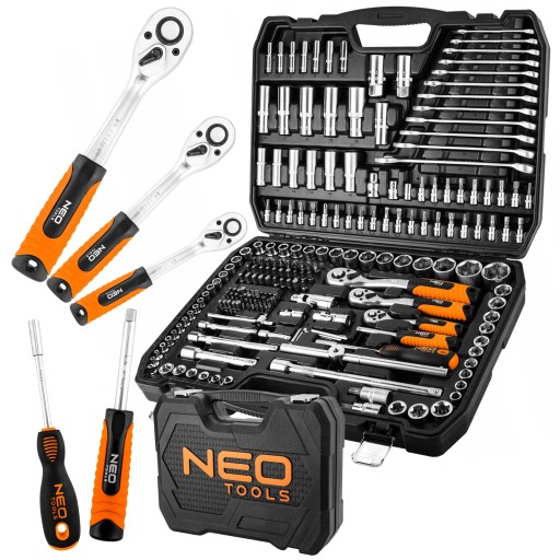 Komplet wysokiej jakości kluczy, nasadek i innych narzędzi niezbędnych w każdym warsztacie. Narzędzia NEO produkowane są w oparciu o najnowsze technologie i nowoczesne materiały. Na komplet NEO udzielana jest 25-letnia gwarancja