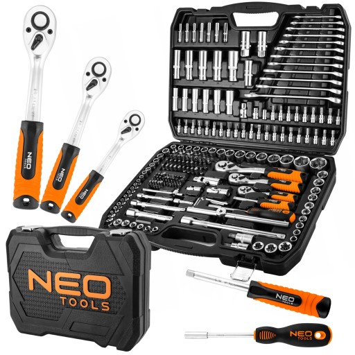 Komplet wysokiej jakości kluczy, nasadek i innych narzędzi niezbędnych w każdym warsztacie. Narzędzia NEO produkowane są w oparciu o najnowsze technologie i nowoczesne materiały. Na komplet NEO udzielana jest 25-letnia gwarancja