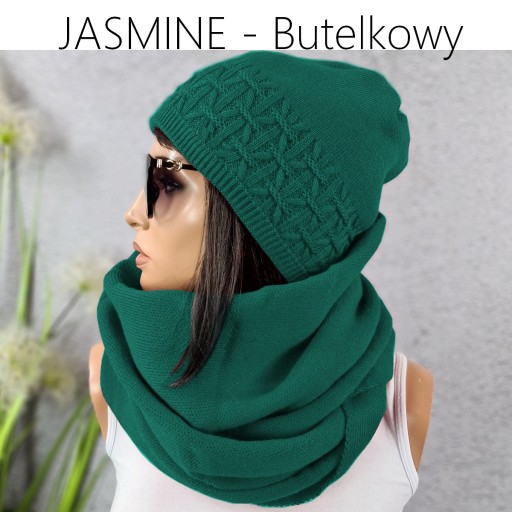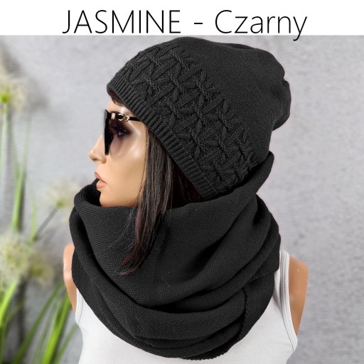 Uniwersalny fason sprawdzi się doskonale do każdej jesiennej jak i mroźnej zimowej stylizacji. Czapka jest delikatnie opadająca ozdobiona modnym wzorem, ładnie się układa. Duży komin zakładany na 2 razy możesz nosić razem lub założyć sam.
