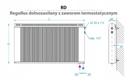 - Odległość grzejnika od ściany: 2 cm
