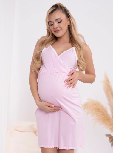 KOSZULA NOCNA CIĄŻOWA NA RAMIĄCZKACH DO KARMIENIA NA ZAKŁADKĘ AFRODYTA - PUDROWA
