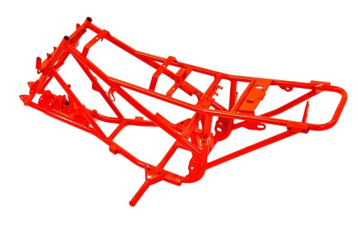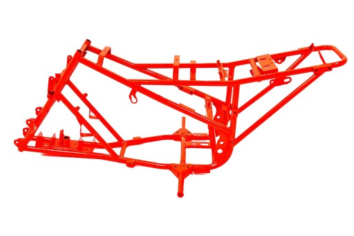Pokryta została specjalną powłoką zabezpieczającą przed korozją w żywym, pomarańczowym kolorze. Kształt ramy został zaprojektowany z myślą, aby zapewnić możliwie najwyższą stabilność quada oraz komfort w prowadzeniu.