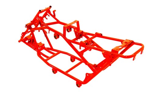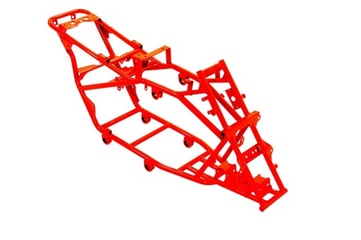 Pokryta została specjalną powłoką zabezpieczającą przed korozją w żywym, pomarańczowym kolorze. Kształt ramy został zaprojektowany z myślą, aby zapewnić możliwie najwyższą stabilność quada oraz komfort w prowadzeniu.