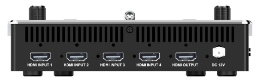 Wieloformatowy mikser wideo z czterema wejściami HDMI do produkcji z użyciem wielu kamer i streamingu na żywo w czasie rzeczywistym.