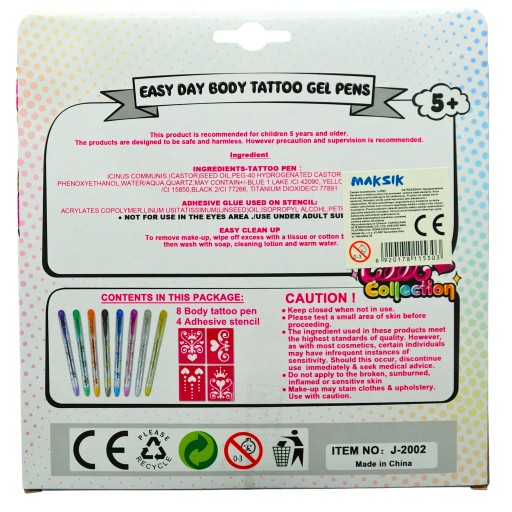 Zestaw zawiera wszystko, czego potrzeba, aby rozpocząć tworzenie zabawnych tatuaży.