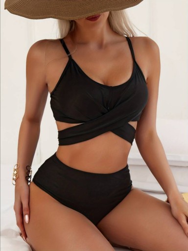 ☀️Kobiecy i niezwykle seksowny komplet kąpielowy składający się z biustonosza oraz marszczonych majteczek z wysokim stanem.