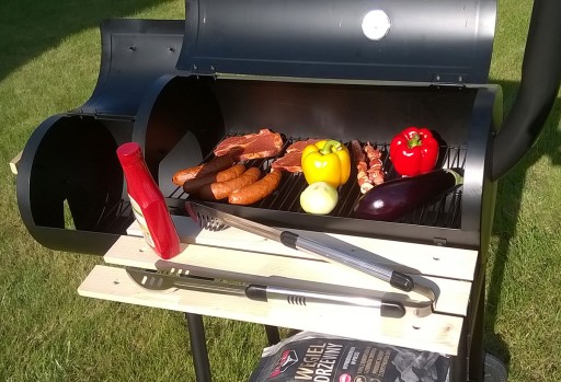 Duży, ogrodowy grill węglowy z wędzarnią: