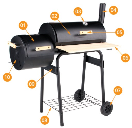 - dwie komory – główna do grillowania oraz mała do przygotowania paleniska do wędzenia