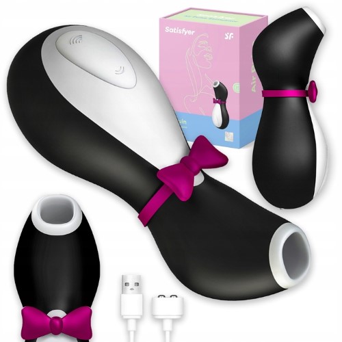 Masażer PINGWINEK wystrojony w elegancki smoking łączy w sobie rewolucyjną technologię fal ciśnienia przypominających efekt ssania z urzekającym i kobiecym designem.
