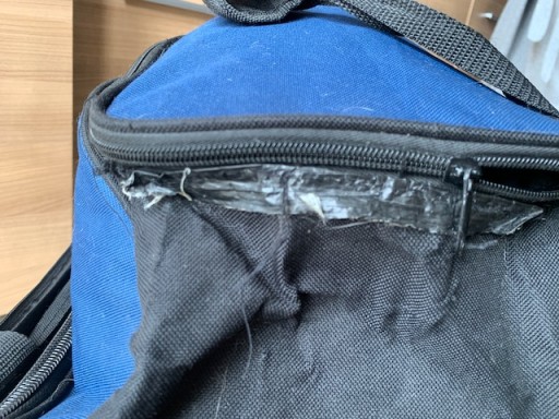 Torba w dobrym stanie-wszystkie zamki suwaki itp. -sprawne-UWAGA w jednym miejscu zamek -górna komora-oddziela się od taśmy-podklejone plastrem-ostatnie zdjęcie.
