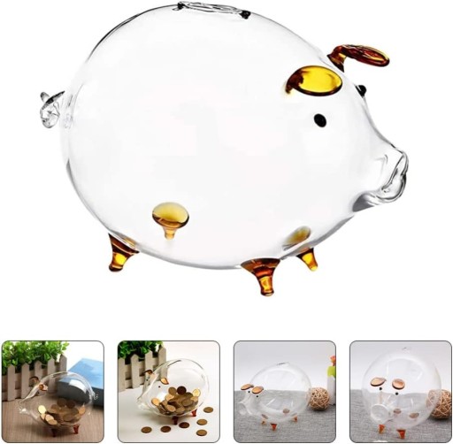 ✅ PIĘKNA DUŻA SZKLANA ŚWINKA SKARBONKA