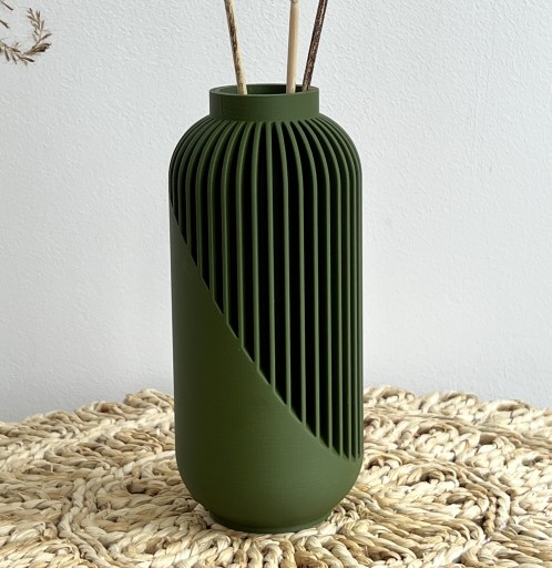 Ten wyjątkowy wazon został wydrukowany w technologii druku 3D. Ma lekką i bardzo ciekawą konstrukcję, a dzięki swojemu unikalnemu kształtowi idealnie prezentuje się sam jak i z kwiatami. Pięknie pasuje zarówno do kwiatów sztucznych jak i modnych suszonych traw. Jest też idealny do kwiatów LEGO, które zyskują ostatnio na popularności. Ale nawet pusty wygląda bardzo efektownie, stanowi designerski element dekoracyjny i będzie nietuzinkową ozdobą twojego wnętrza.