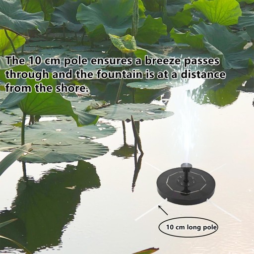 Z czterema rozpórkami, aby wiatr nie przeniósł fontanny na brzeg stawu podczas użytkowania (długość pojedynczej rozpórki to 10 CM).