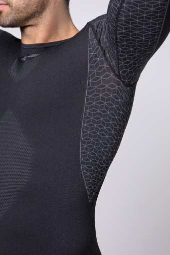SPAIO BREEZE zestaw męskiej chłodzącej bielizny - został stworzony z myślą o motocyklistach czerpiących przyjemność z jazdy motorem w letnie, upalne dni. Komplet termoaktywny zawiera koszulkę z długimi rękawami oraz getry - legginsy z długimi nogawkami. Odzież jest bardzo elastyczna, przyjemna w dotyku i w atrakcyjnym designie. Oprócz walorów technicznych producent zwrócił uwagę na odpowiednie dopasowanie odzieży do sylwetki. Koszulka ma nieco wydłużone rękawy a getry posiadają wyższy stan gwarantujący idealne dopasowane do specyficznej sylwetki podczas jazdy na motorze. Dodatkowo reglanowa konstrukcja rękawów zapewnia komfort i wygodę nawet podczas wielogodzinnych wypraw.