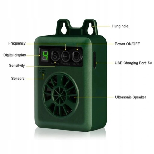 Poziom 4 - Emit Częstotliwość ultradźwiękową automatycznie 1-3 Różny poziom tonu częstotliwości ultradźwiękowej 6 sekund Czas trwania, wyświetlacz cyfrowy. 4.