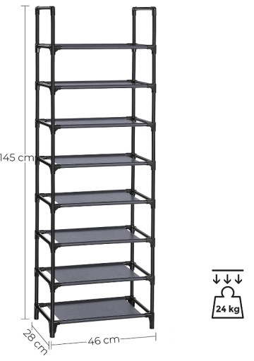 ПОЛКА ДЛЯ ОБУВИ С 8 ПОЛКАМИ 46 x 28 x 145 (СМ)