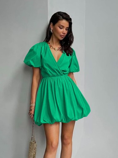 Женские короткие повседневные летние платья с пышными рукавами и V-образным вырезом L