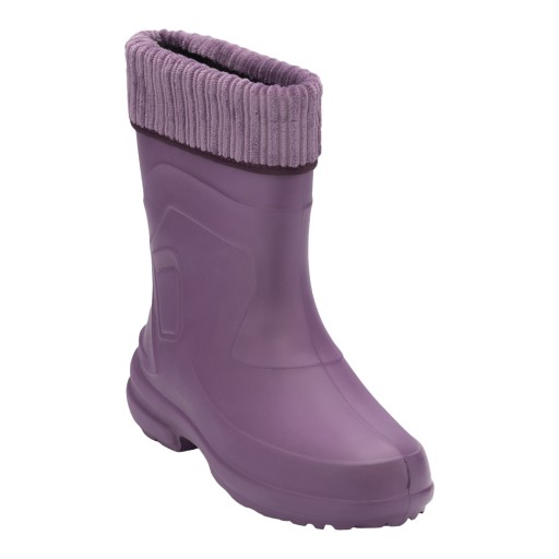 Damskie kalosze ocieplane wykonane z tworzywa EVA. Wymienny ocieplacz i sztruksowy kołnierz zapewniają dobrą izolację termiczną. Aluminiowa izolacja podeszwy zapobiega przenikaniu zimna od strony podłoża. Obuwie zawodowe, przeznaczone do użytkowania w temperaturze do -30 stopni Celsjusza.