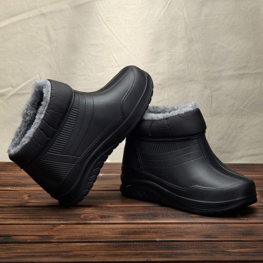 Buty ocieplane wykonane z lekkiej wytrzymałej pianki. Wnętrze wyłożone misiem, co gwarantuje komfort termiczny w zimowe dni. W pełni wiatro i wodoodporne. Idealne na szybkie wypady do ogródka.