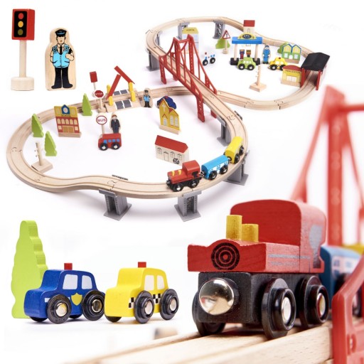 KOLEJKA DREWNIANA POCIĄG TOR SAMOCHODOWY + 70EL