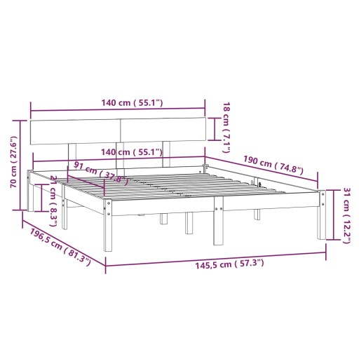 vidaXL Rama łóżka z litego drewna sosnowego, 140 x 190 cm