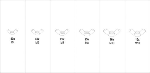 150 SZT NAKRĘTKI MOTYLKOWE METRYCZNE MIX