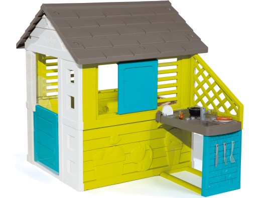 Domek z 2 oknami, które maja żaluzje, po obu stronach odsuwane okiennice. Oryginalny wygląd dzięki wizerunkom zwierząt na ścianach. Odporna i stabilna konstrukcja. Powłoka ANTI-UV chroniąca przed blaknięciem. 2 l+