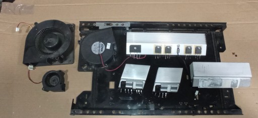 W skład zestawu wchodzi wszystko co na zdjęciu cztery radiatory trzy wentylatory ( sprawne ) plastikowa podstawa do montażu wentylatora i radiatora (tranzystory mostki i czujnik temperatury gratis