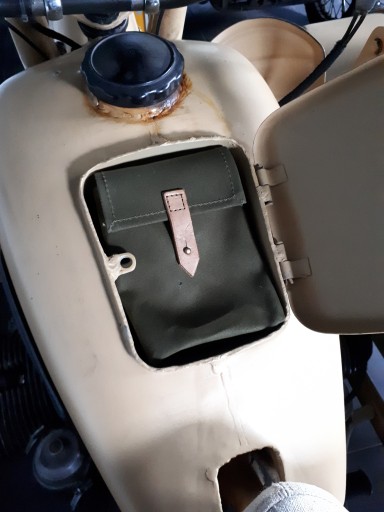 Torebka do baku motoru z brezentu, impregnowanego wodoodpornie i przeciwgnilnie.