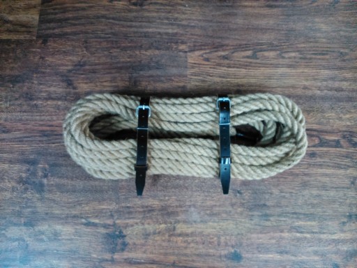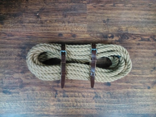 Długość liny to 10 metrów + 2 paski skórzane do zamocowania jej.