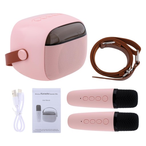[Cechy]: Przenośny głośnik z mikrofonami bezprzewodowymi charakteryzuje się doskonałą jakością wykonania, wyjątkowymi detalami, delikatnymi kolorami, wysoce przywróconymi realistycznymi dźwiękami, stabilnym połączeniem i transmisją oraz jakością dźwięku stereo.