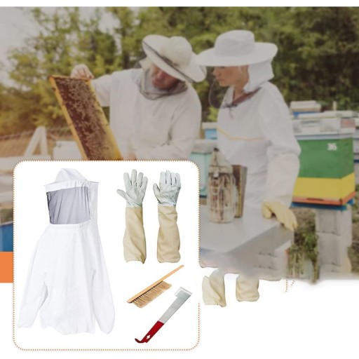 🐝Lista opakowań: dostępne są kombinezony pszczelarskie, rękawice pszczelarskie, szczotki dla pszczół i skrobaki, które są wygodne i praktyczne.