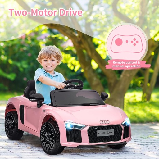 Samochód elektryczny dla dzieci, Audi R8 Spyder, licencjonowany samochód elektryczny dla dzieci w wieku 3-8 lat, z zabezpieczeniem przed dziećmi, drzwiami nożycowymi, zawieszeniem, 3 biegi, światła LED