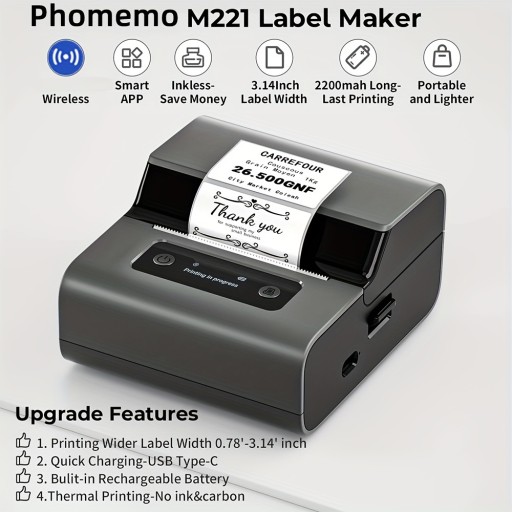 Phomemo Label Maker- With 3pcs Labels M221 Address Label Printer 3 Inch