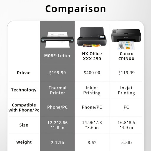 Phomemo Portable Printer Wireless For Travel, M08F-Letter Wireless Mobile