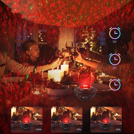 - Projektor gwiezdny może być używany jako światło nocne, światło otoczenia fal oceanicznych, światło nastrojowe, oświetlenie sceniczne, kula dyskotekowa, oświetlenie dekoracyjne pokoju gier, oświetlenie dekoracyjne kina domowego, oświetlenie DJ.