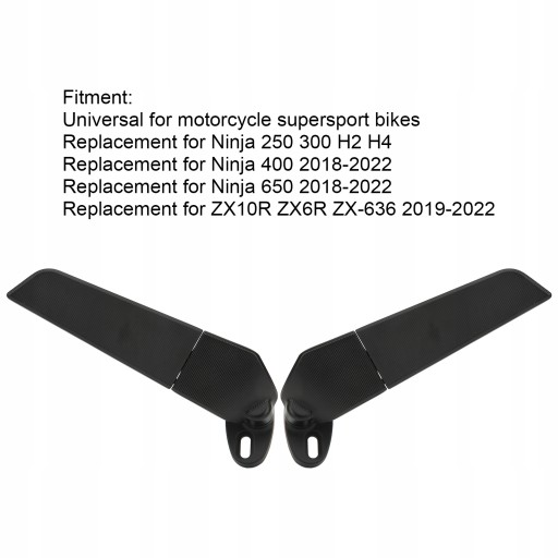 1. Montaż: to lusterko wsteczne motocykla, które przekształca się w skrzydło aerodynamiczne, przeznaczone do motocykli supersportowych, zamiennik Ninja 250 300 H2 H4 itp.