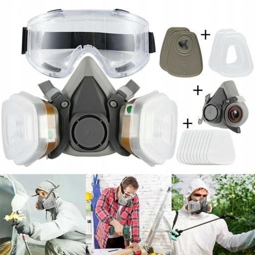 Maska przeciwgazowa wielokrotnego użytku z okularami ochronnymi, filtrami do malowania, spawania, polerowania, obróbki drewna i innych prac ochronnych (średnia)