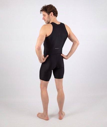 Klasyczny strój do triathlonu FLORIDA z linii RACE FIT, wykonany z lekkiego i przewiewnego materiału Dynaflex, zaprojektowany jako UNISEX - nadający się zarówno dla kobiet jak i mężczyzn. Nogawki zakończone silikonowym paskiem, zapobiegającym zsuwaniu się materiału. Strój wyposażony w przedni zamek oraz dwie tylne kieszonki.