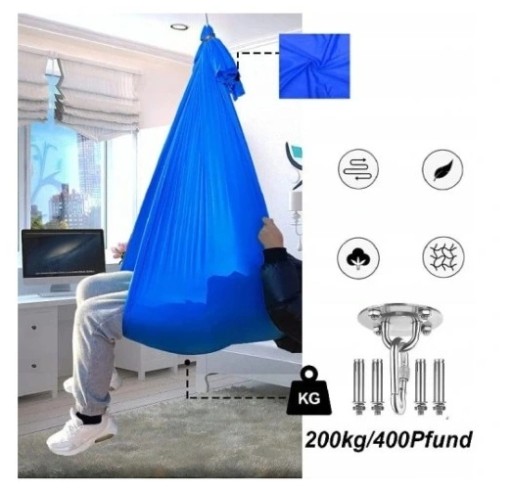 - Odporna i trwała Ta terapeutyczna huśtawka dla dzieci i dorosłych wykonana jest z wysokiej jakości miękkiego i jedwabistego nylonu. Odwracalny i zmywalny. Najcięższy może unieść 200kg/440lbs.