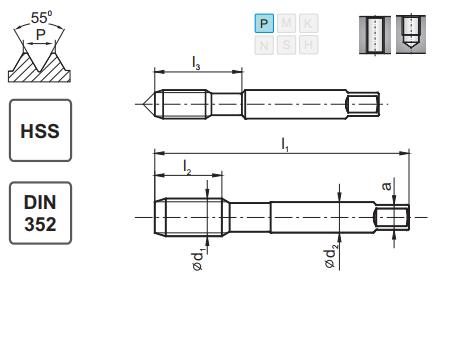 Komplet gwintowników ręcznych norma DIN-352- 3 elementowy (zdzierak, pośredni i wykańczak).Zestaw przeznaczony do otworów przelotowych i nieprzelotowych.
