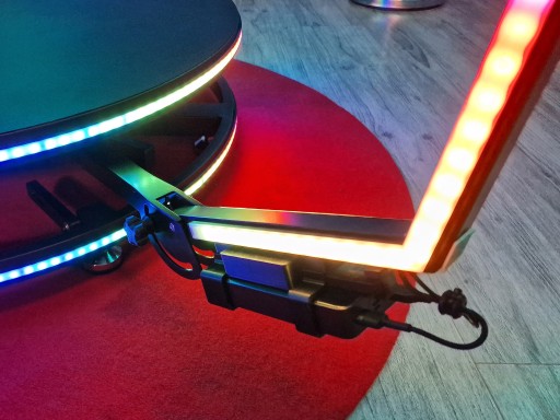 - oświetlenie LED RGB MAGIC na obwodzie dolnej i górnej części podestu fotobudki 360 zamontowane w ochronnym profilu aluminiowym z mlecznym kloszem rozpraszającym światło po obwodzie każdej z części podestu
