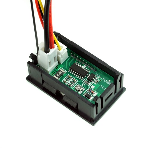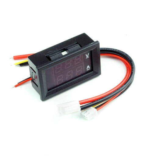 Moduł panelowego Woltomierza i Amperomierza prądu stałego DC dokonujący pomiaru w zakresie 0-100V i do 10A. Moduł posiada dwurzędowy 3-cyfrowy wyświetlacz 0.28 cala. Błąd pomiaru mieści się w granicach 0.1% dla napięcia i 1% natężenia. Pobór prądu wynosi poniżej 20mA. Moduł z tyłu posiadają dodatkowo potencjometry do kalibracji pomiarów natężenia oraz napięcia.