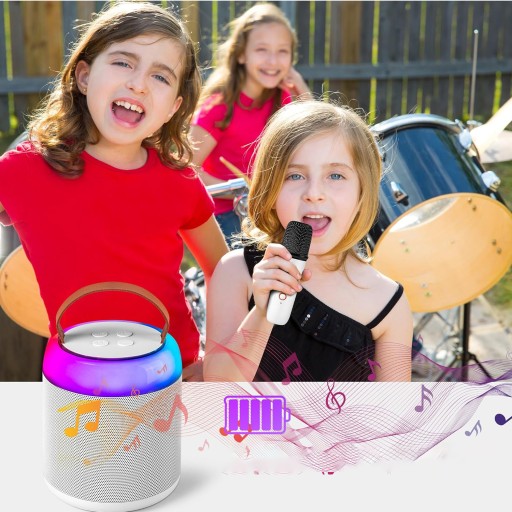 🎤 Dzięki dwóm mikrofonom bezprzewodowym, prostym klawiszom sterującym i migającym diodom LED obsługuje kartę Micro TF, połączenie AUX, tryb OTG.
